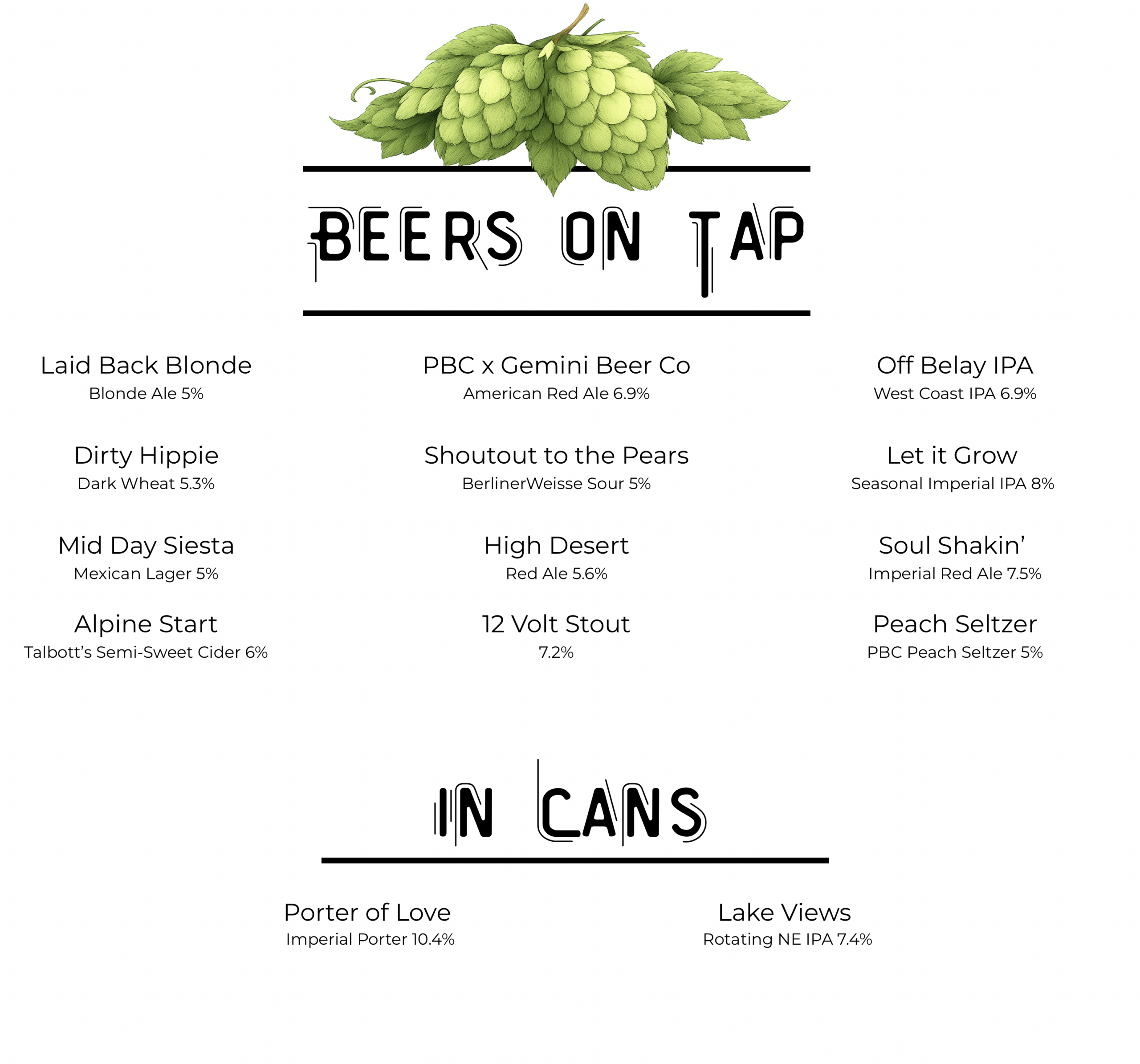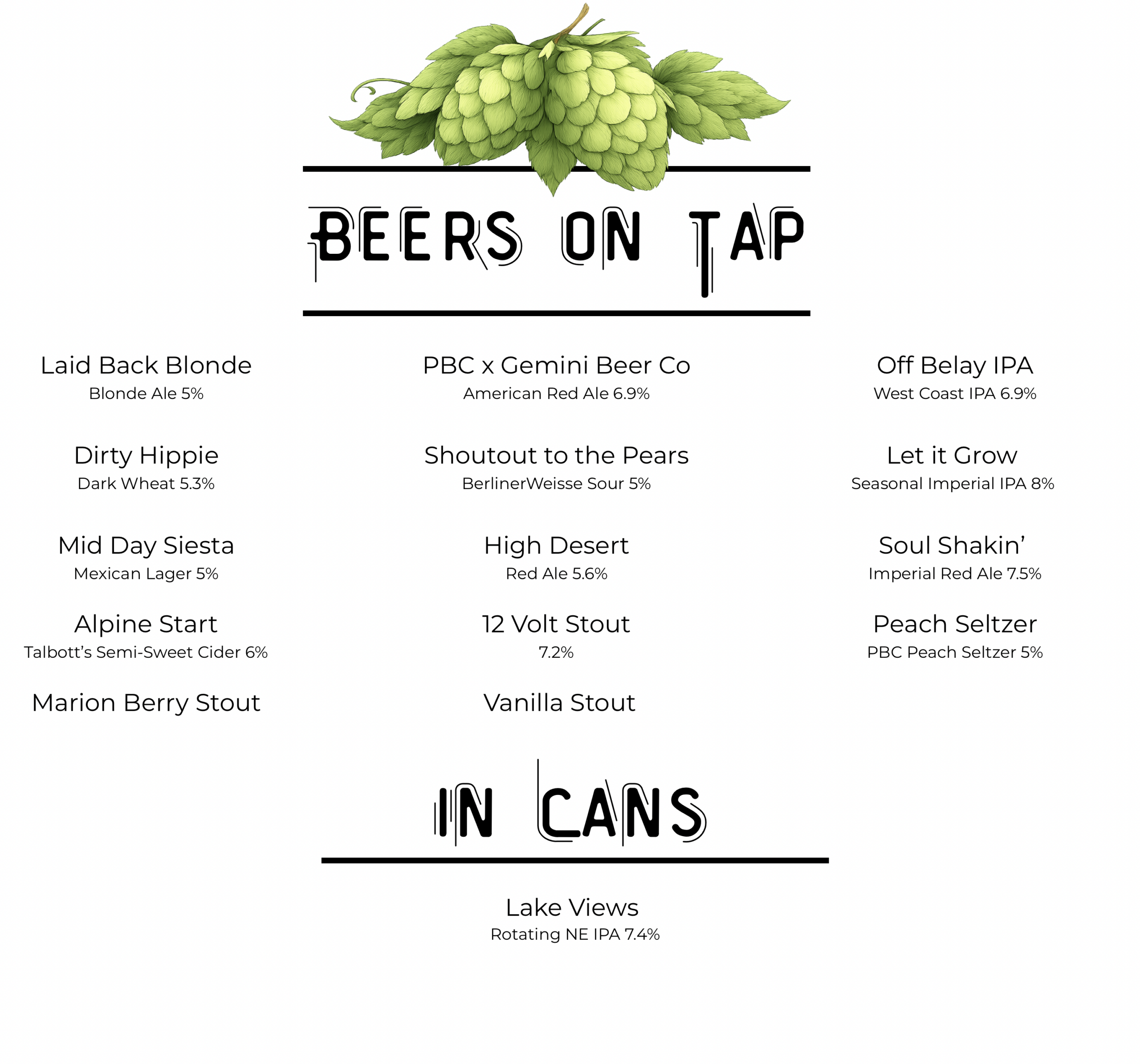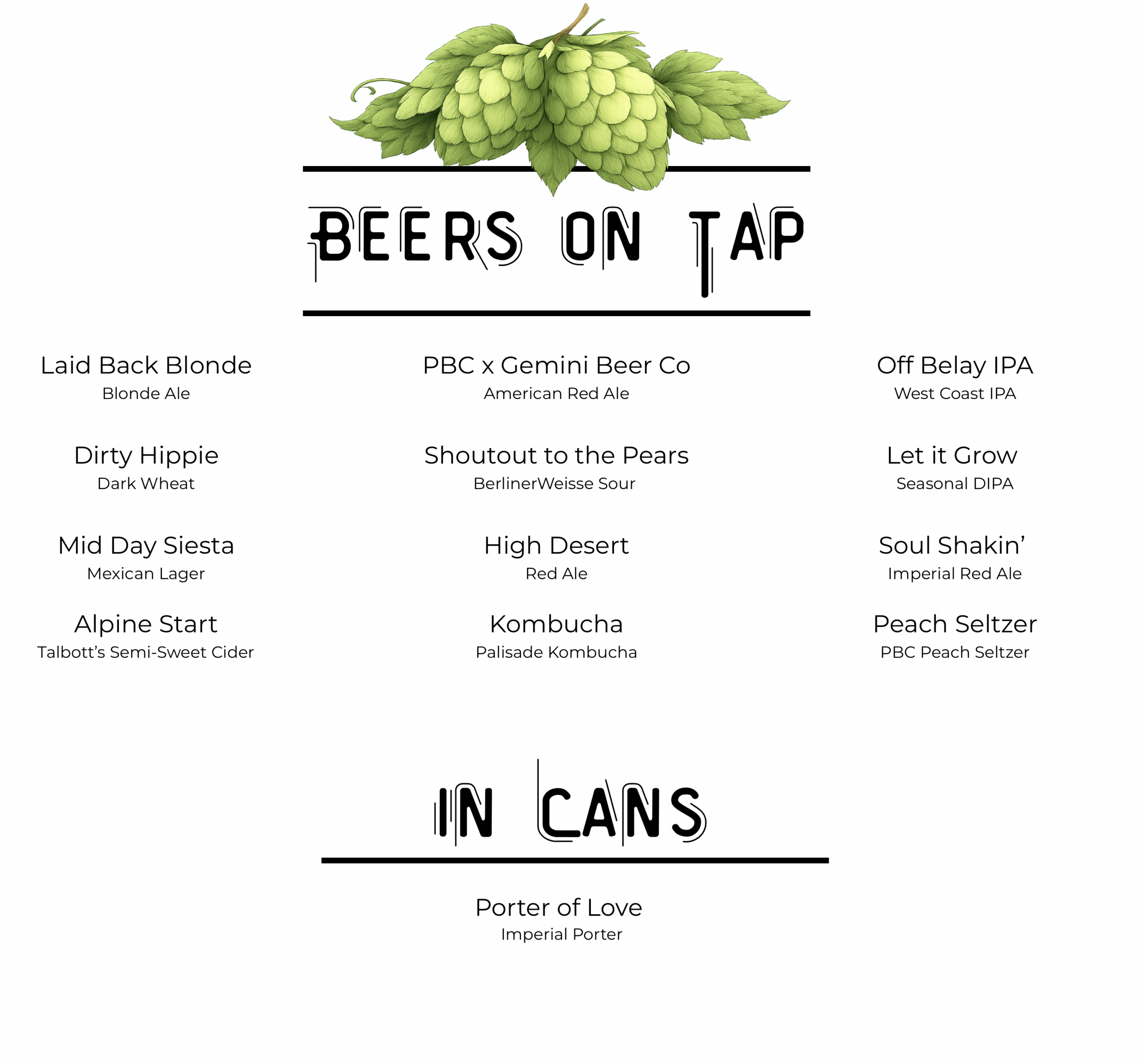 Beer & Drink Menu